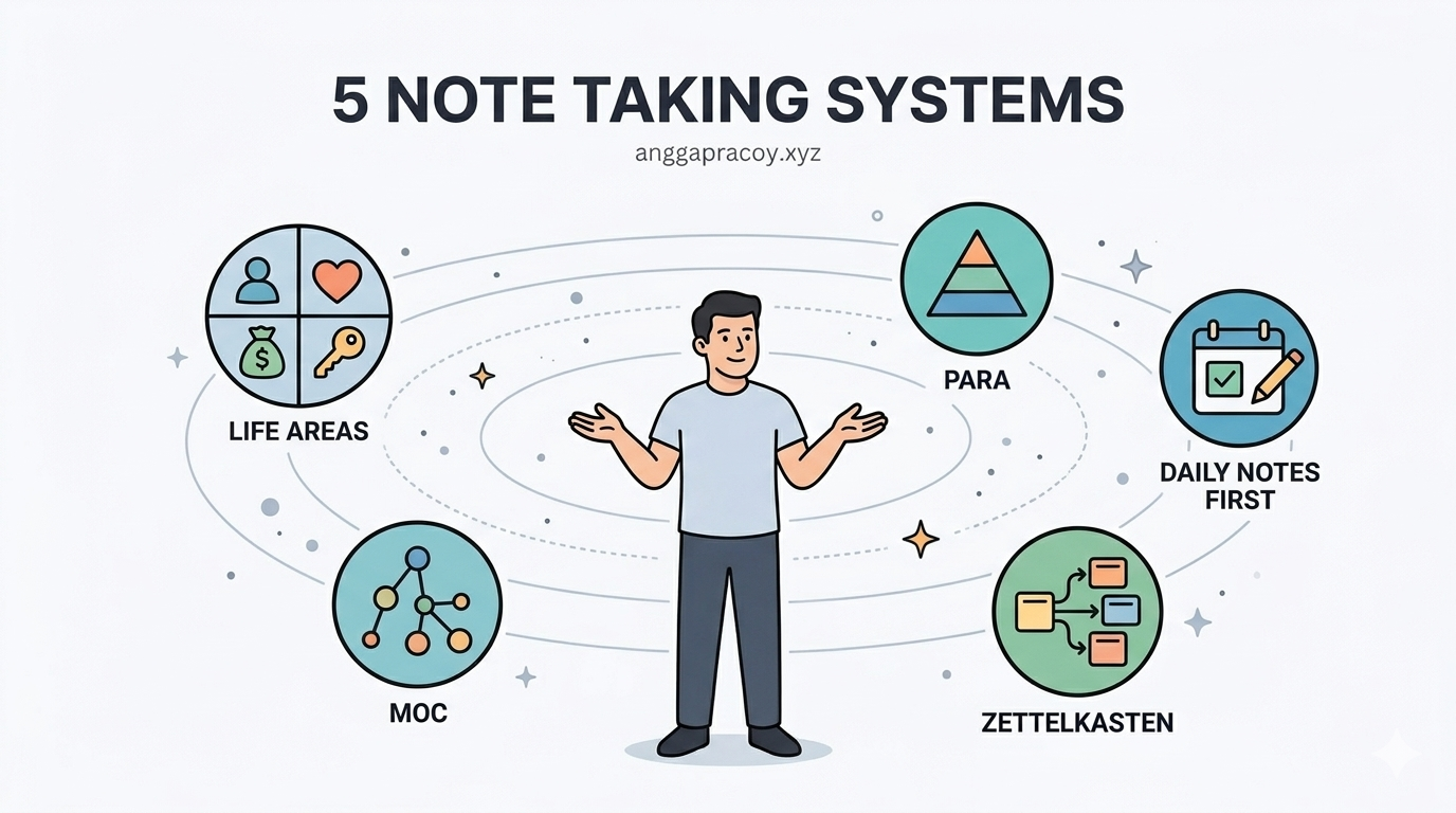 Kalau anda baru mulai serius soal PKM atau note-taking, kemungkinan besar anda udah pernah googling “cara terbaik mengorganisir catatan” — dan langsung pusing karena jawabannya banyak banget dan semuanya kelihatan bener.