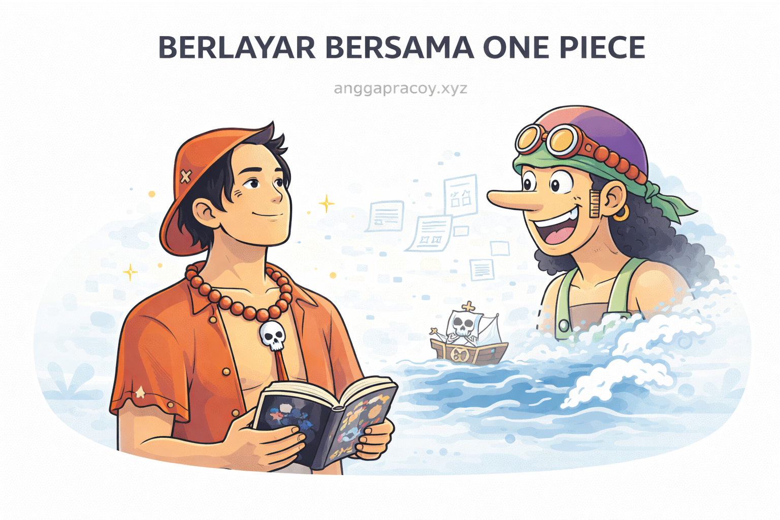 Aku kenal One Piece waktu SD. Entah dari mana persisnya — mungkin dari teman, mungkin dari nonton sekilas di TV. Waktu itu aku belum sepenuhnya ngerti ini manga apa, tokohnya siapa, atau kenapa ada orang makan buah terus bisa mulur kayak karet. Yang aku tahu: ini seru, dan teman-teman pada suka.